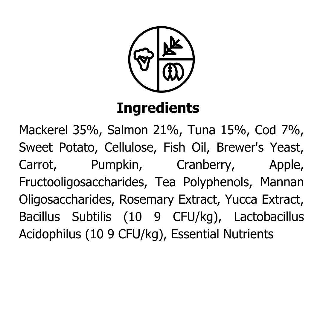High-Quality Pure Fish Protein: Tuna, mackerel, salmon, and cod provide high-quality, complete proteins essential for muscle maintenance and growth in dogs. Their proteins supply all the necessary amino acids, supporting lean body mass and healthy organ function. Because fish proteins are highly digestible, dogs can efficiently absorb and utilize these nutrients for energy and tissue repair. Incorporating these protein-rich sources into kibbles helps ensure your dog meets its daily dietary requirements for strength, vitality, and overall wellbeing